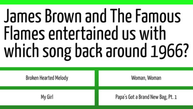Look forward to questions like "What repeated day of the week was "so good to me" according to the Mamas and the Papa.." and "According to Duane Eddy, what at night are big and bright, deep in the heart of Texas.."