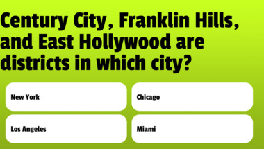 5/10 is the score to beat in this Geography quiz to put yourself over the average quiz taker. But you're probably going to be able to answer questions "Putney, Hackney, and Islington are areas in which city?" and "Century City, Franklin Hills, and East Hollywood are districts in which city?" easy!