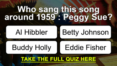 In this fun trivia quiz we're going to ask questions like "Who sang this song around 1959 : "Peggy Sue"?" and "Who sang this song around 1959 : "Great Balls of Fire"?".