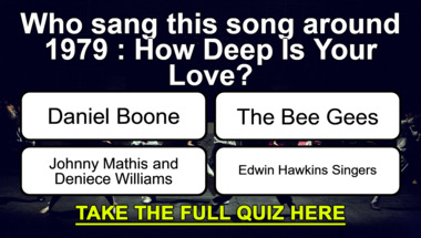 6/10 is what people on average are scoring in this trivia quiz so far. Are you ready to answer questions like "Who sang this song around 1979 : "How Deep Is Your Love"?" and "Who sang this song around 1977 : "Breaking Up Is Hard to Do"?"