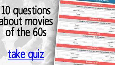 6/10 is the score to beat in this 1960s Movies quiz to put yourself over the average quiz taker. But you're probably going to be able to answer questions "There were 101 of which type of dogs in the 1961 Disney movie?" and "Where did Audrey Hepburn have breakfast in 1961?" easy!