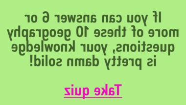 6/10 is the score to beat in this Geography quiz to put yourself over the average quiz taker. But you're probably going to be able to answer questions "Which of these is NOT in London? " and "The town of Cannes is located in which European country?" easy!