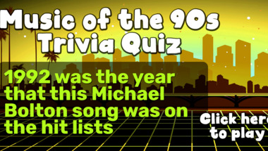 If you can answer "You must remember this hit from Elton John which was heard all over the place in 1995.." and maybe even "1992 was the year that this Michael Bolton song was on the hit lists" there is a good chance that you're going to beat the average score of 6/10 in this 1990s Hits quiz