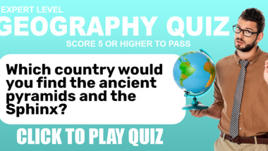5/10 is the score to beat in this Geography quiz to put yourself over the average quiz taker. But you're probably going to be able to answer questions "Which country would you find the ancient pyramids and the Sphinx?" and "Which of these States does not fall into the Bible Belt?" easy!