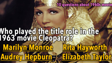 In this fun 1960s Movies quiz we're going to ask questions like "Which singer is in the 1960 movie GI Blues?" and "Who played the title role in the 1963 movie Cleopatra?".