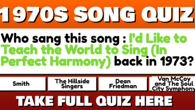 4/10 is what people on average are scoring in this trivia quiz so far. Are you ready to answer questions like "Who sang this song : "Oh Happy Day" back in 1970?" and "Who sang this song : "I'd Like to Teach the World to Sing (In Perfect Harmony)" back .."
