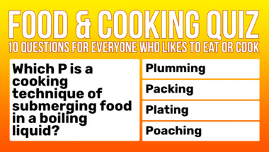 In this fun trivia quiz we're going to ask questions like "Which P is a cooking technique of submerging food in a boiling liquid?" and "What word means dousing something in alcohol and setting it alight?".