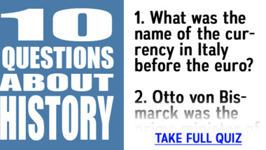 5/10 is what people on average are scoring in this History quiz so far. Are you ready to answer questions like "What was the name of the currency in Italy before the euro?" and "Motorola released the first commercially-available what in 1982?"