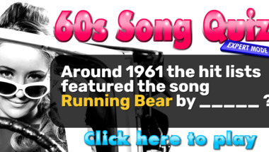 In this fun trivia quiz we're going to ask questions like "Around 1961 the hit lists featured the song "Running Bear" by _____ ?" and "Around 1963 the hit lists featured the song "Sheila" by _____ ?".