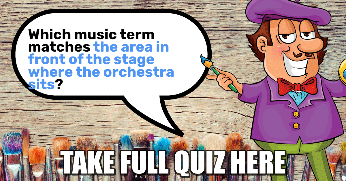 Which music term matches "the area in front of the stage where the orchestra sits"?