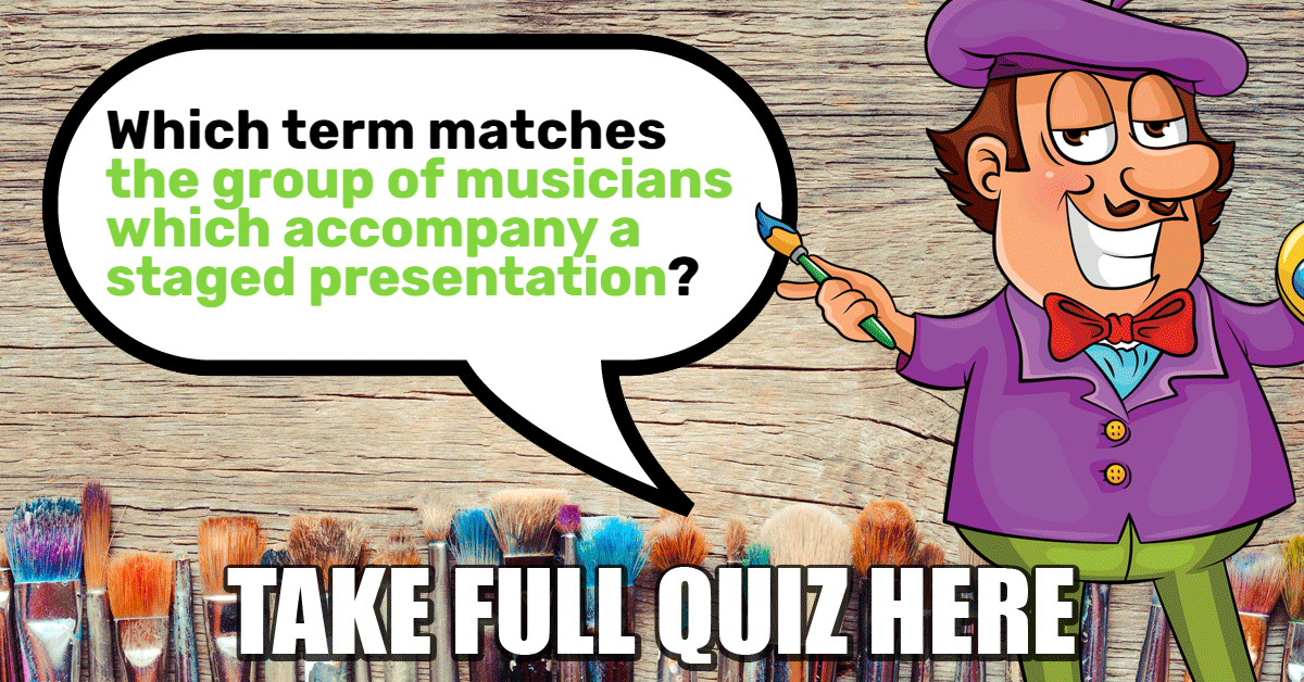 Which term matches "the group of musicians which accompany a staged presentation"?