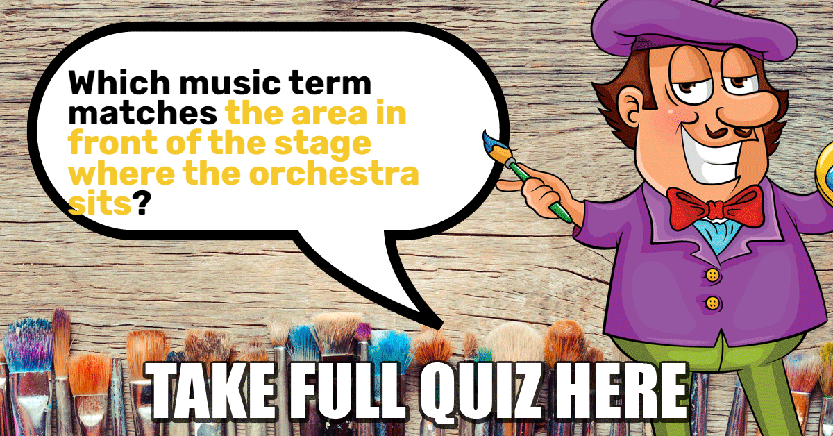 Which music term matches "the area in front of the stage where the orchestra sits"?