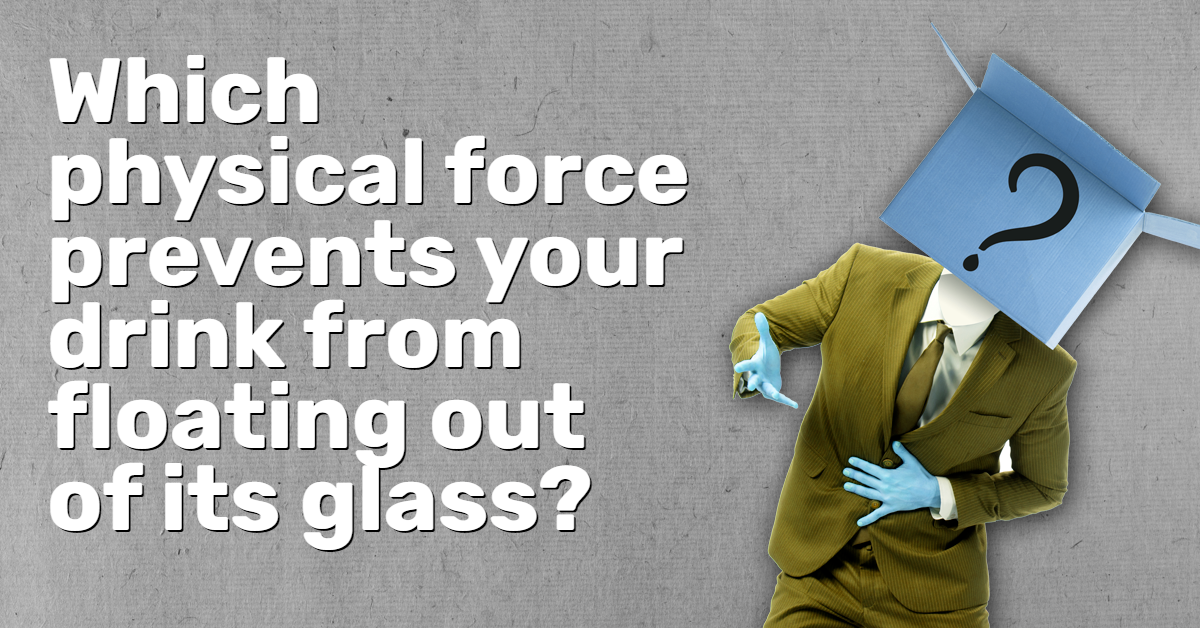 Which physical force prevents your drink from floating out of its glass?