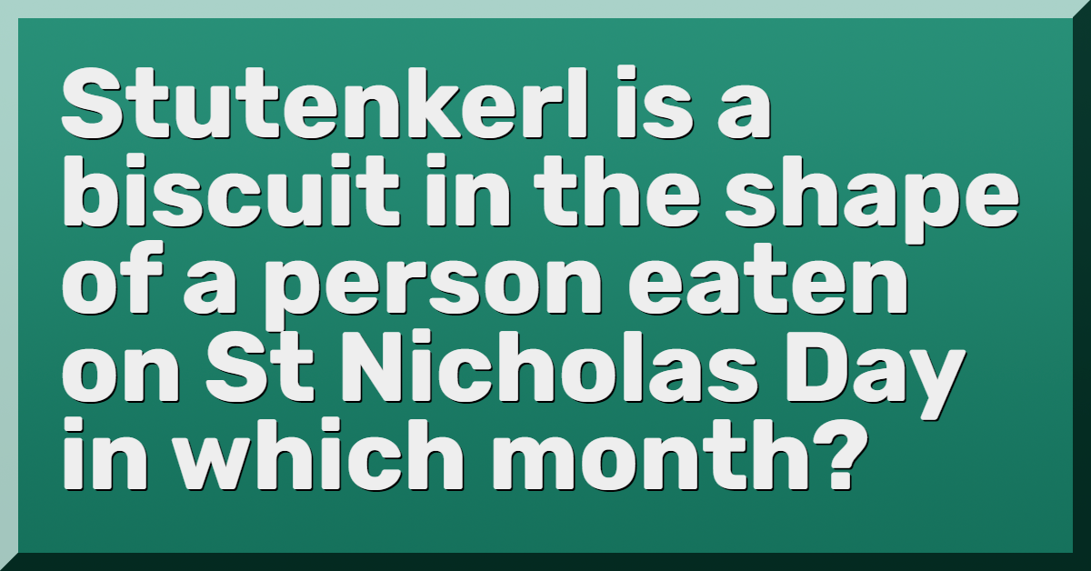 Stutenkerl is a biscuit in the shape of a person eaten on St Nicholas Day in which month?