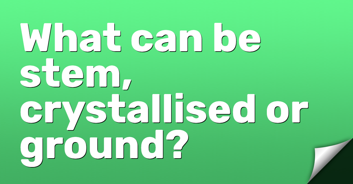 What can be stem, crystallised or ground?
