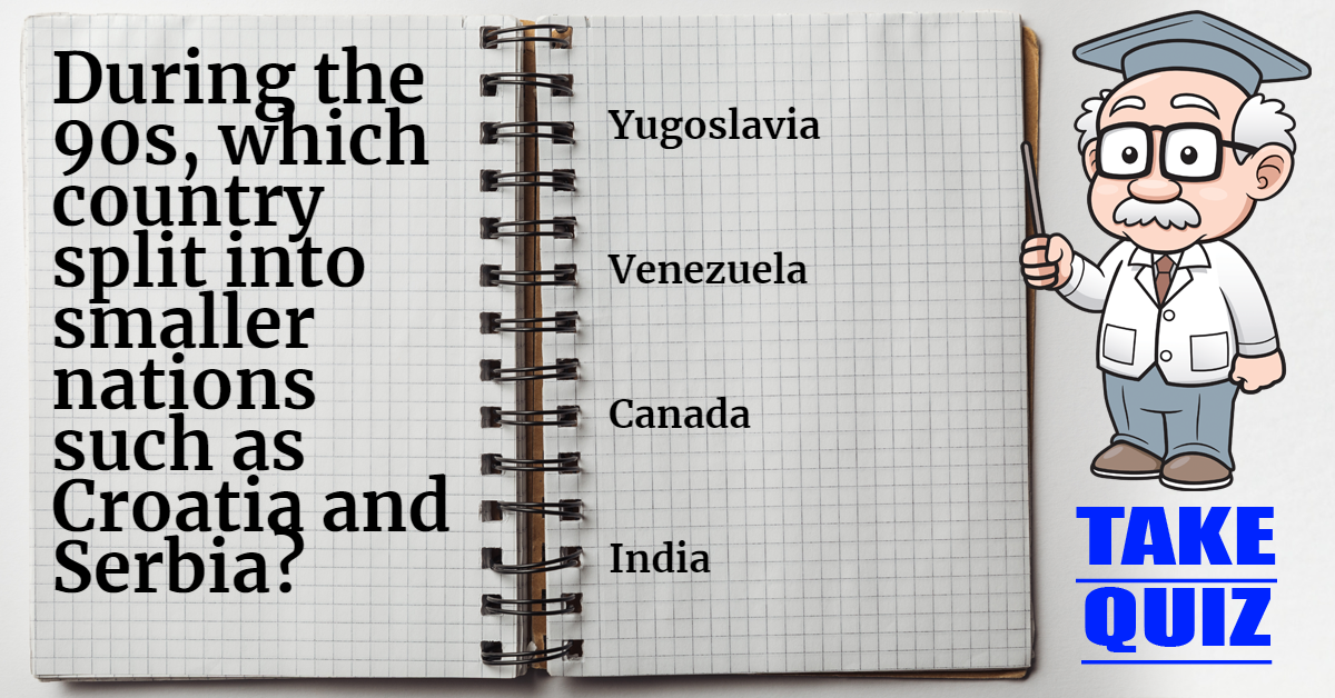 During the 90s, which country split into smaller nations such as Croatia and Serbia?