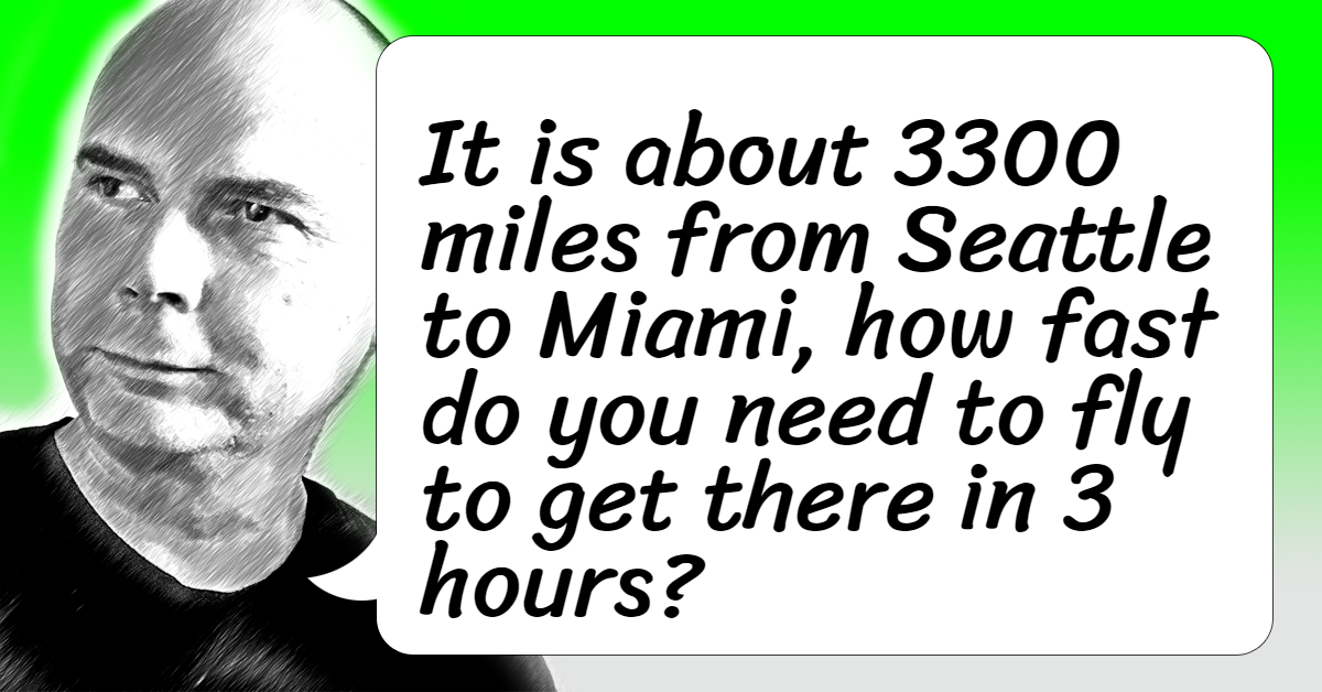 It is about 3300 miles from Seattle to Miami, how fast do you need to fly to get there in 3 hours?