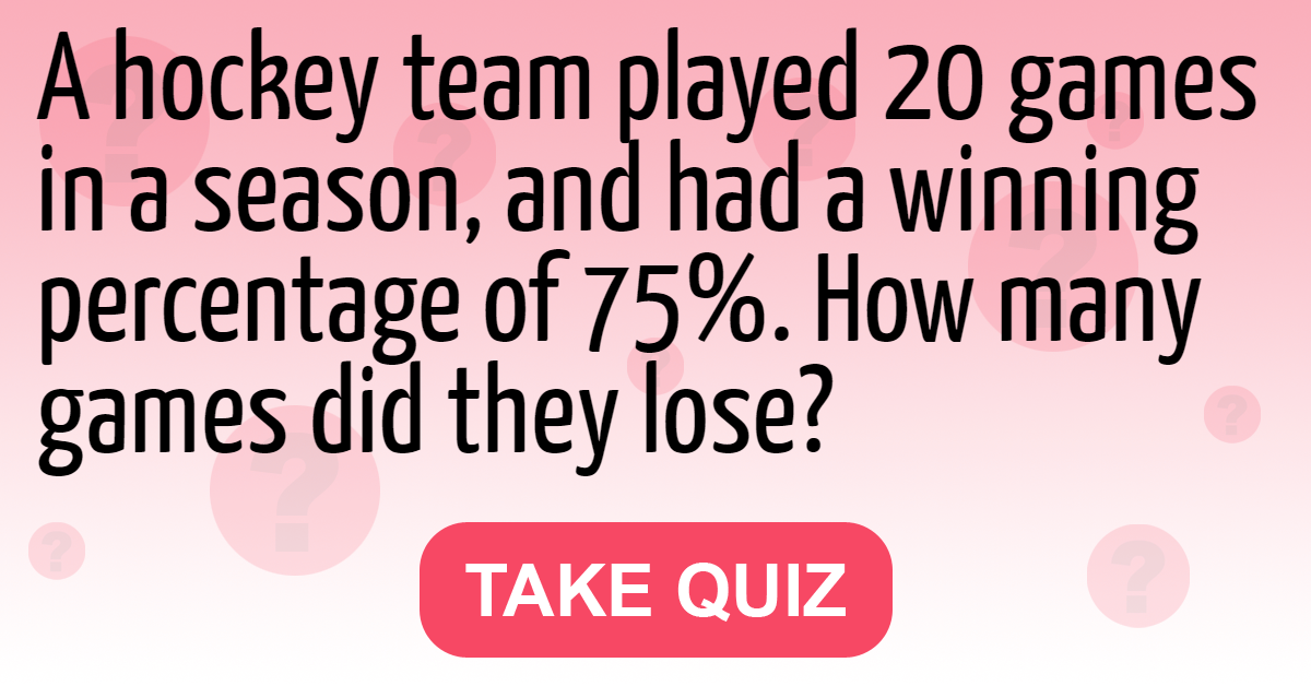 A hockey team played 20 games in a season, and had a winning percentage of 75%. How many games did they lose?