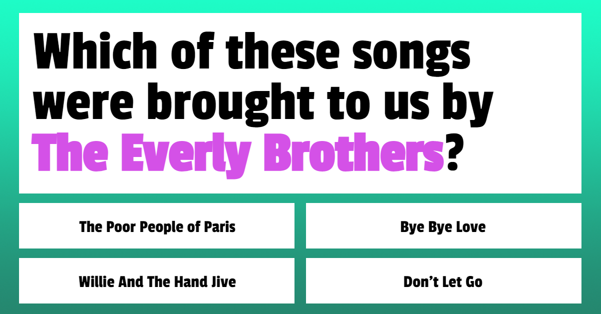 Which of these songs were brought to us by "The Everly Brothers"?