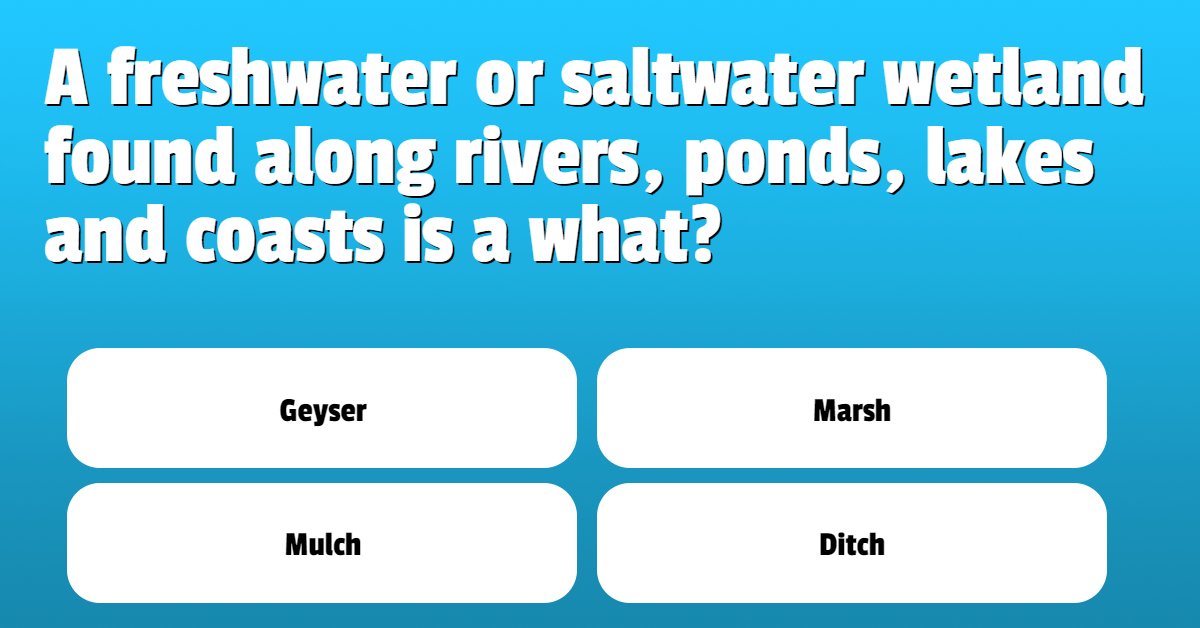 A freshwater or saltwater wetland found along rivers, ponds, lakes and coasts is a what?