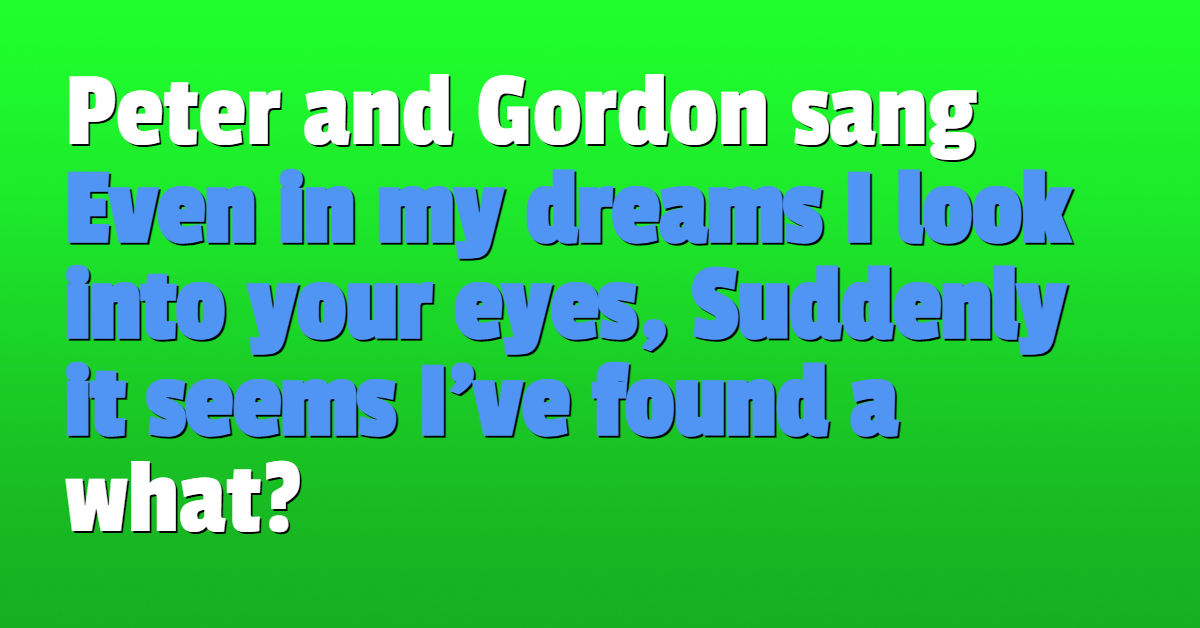 Peter and Gordon sang "Even in my dreams I look into your eyes, Suddenly it seems I've found a" what?