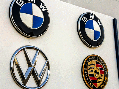 Which automobile manufacturer proudly sports a logo that looks like the Olympic rings on a diet, featuring just four interlocking circles?