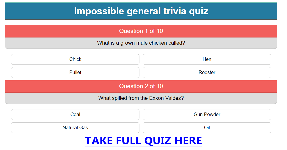 Impossible general trivia quiz