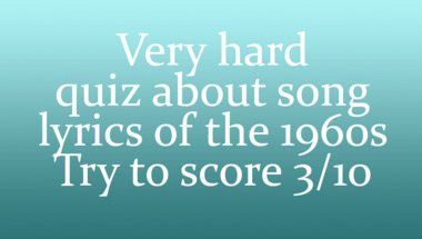 5/10 is what people on average are scoring in this 1960s Songs quiz so far. Are you ready to answer questions like "Who sang this song : "Good Vibrations" back in the 60s?" and "Who sang this song : "Under the Boardwalk" back in the 60s?"