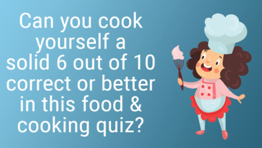 7/10 is what people on average are scoring in this Food & cooking quiz so far. Are you ready to answer questions like "Eastern German gurken, or gherkins, are which small vegetables, pickled?" and "Which country's national dish is Moussaka?"