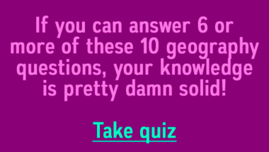 If you can answer "Which of these countries is the odd one out?" and maybe even "Which city is also known as 'The City of Angels'?" there is a good chance that you're going to beat the average score of 8/10 in this Geography quiz