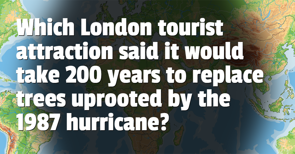 Which London tourist attraction said it would take 200 years to replace trees uprooted by the 1987 hurricane?