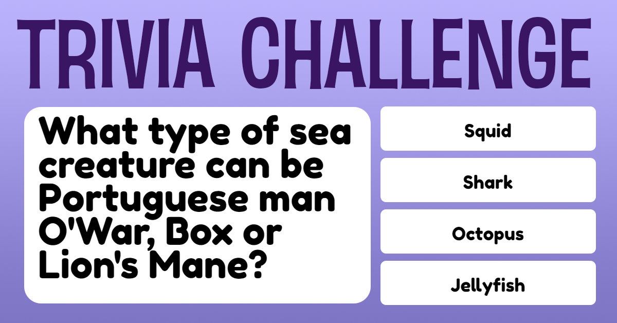 What type of sea creature can be Portuguese man O'War, Box or Lion's Mane?