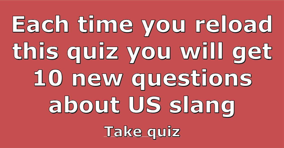 Each time you reload this quiz you will get 10 new questions about US slang